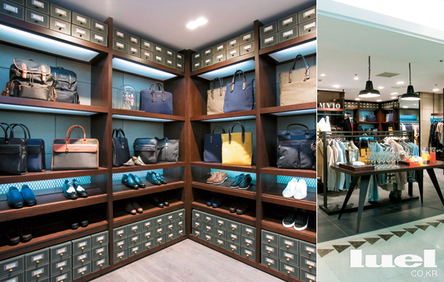 Change of Mvio 구찌, 루이비통, 버버리 프로섬. 이들의 공통점은 특출한 스타 디자이너가 기존의 올드했던 브랜드 이미지를 180도 바꾸어 놓았다는 점이다. 이는 더이상 해외 브랜드의 사례만은 아니다. 위트 있고 재기 발랄한 디자인을 선보이던 디자이너 한상혁이 엠비오의 크리에이티브 디렉터를 맡게 된 후부터 브랜드의 변화가 시작됐기 때문이다. 롯데백화점 본점 엠비오 매장의 리뉴얼 현장에서 변화의 조짐을 확인할 수 있다. 엠비오의 캐주얼 라인과 액세서리 라인이 강화되면서 인테리어도 이에 맞는 편안한 분위기의 매장으로 탈바꿈한 것. 내셔널 브랜드 제품으로서는 드물게 재킷 소매에 리얼 버튼을 채용한 것도 반가운 변화 중 하나다. |