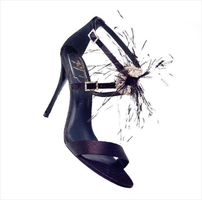 주얼과 깃털 장식으로 페미닌한 매력을 어필한다. 3백20만원대, Roger Vivier.