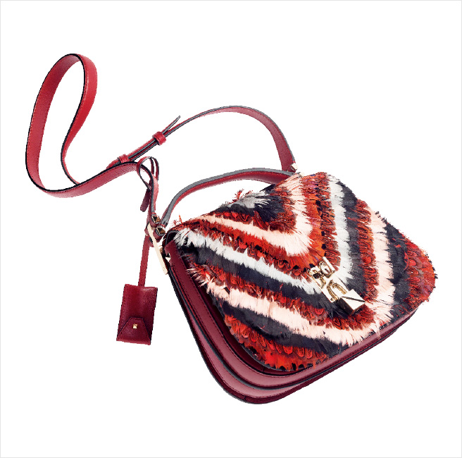 화려한 깃털 장식이 돋보이는 백은 5백40만원, Valentino Garavani.