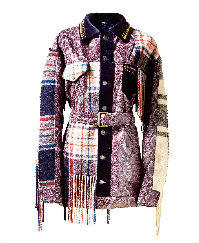 파이톤 패턴과 체크 패턴의 믹스매치로 빈티지한 무드의 재킷은 6백49만원, Maison Margiela.