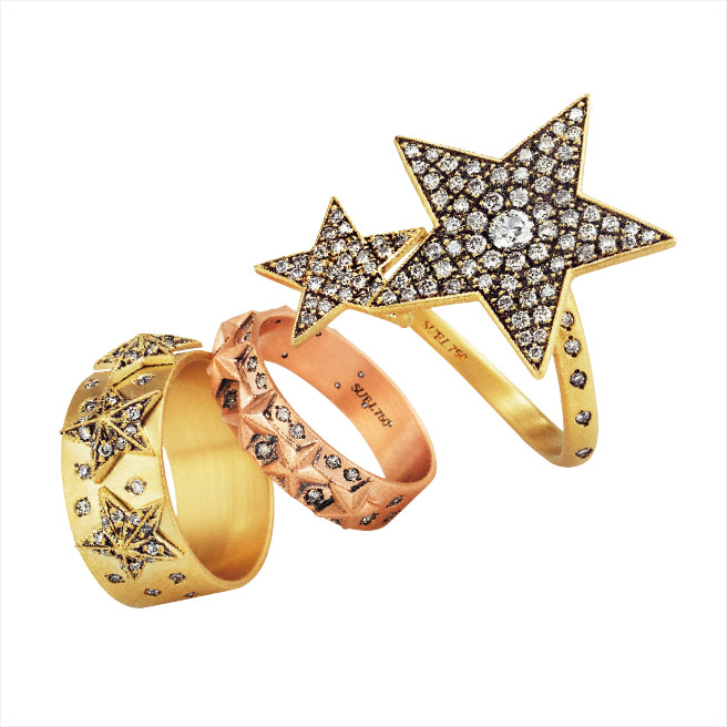 수엘을 대표하는 아이코닉한 디자인은 무엇인가 주얼리 중 반지를 가장 좋아한다. 그래서인지 내 컬렉션에는 반지 아이템이 많은 편이다. 유행은 돌고 돈 다는 말이 있듯이, 재미있게도 10년 전 브랜드 초창기에 디 자인한 대표 아이템이 다시 유행하며 최근에는 주목을 받 고 있다. 여러 모양의 반지를 겹쳐 끼는 ‘스태커블 링 (Stackable Rings; 레이어드 링)’이다.