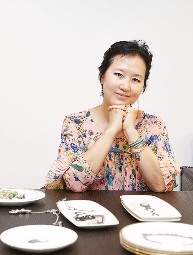 10년 넘게 브랜드를 유지해오고 있는데, 처음과 달리 변한 것이 있다면 주얼리를 체계적으로 배운 적은 없지만, 시간이 지 날수록 디자인적인 부분이나 기술적인 부분에서 완성도 있 는 주얼리를 만들고 브랜드를 탄탄하게 하기 위해 끊임없이 연구해왔다. 요즘도 여전히 H.R을 처음 시작할 때와 마찬 가지로 큰 고민 없이 새로운 프로젝트를 시도하곤 한다. 최 근 주얼리가 그려진 접시가 있으면 멋질 것 같아 그림 그리 는 친구에게 H.R 주얼리가 그려진 테이블웨어를 만들자고 제안했다. 식사를 하는 캐주얼한 자리에서 떠오른 아이디 어였는데, 그 아이디어를 그대로 반영한 프로젝트를 진행 한 끝에 만족스러운 결과물이 나와 곧 판매할 예정이다.