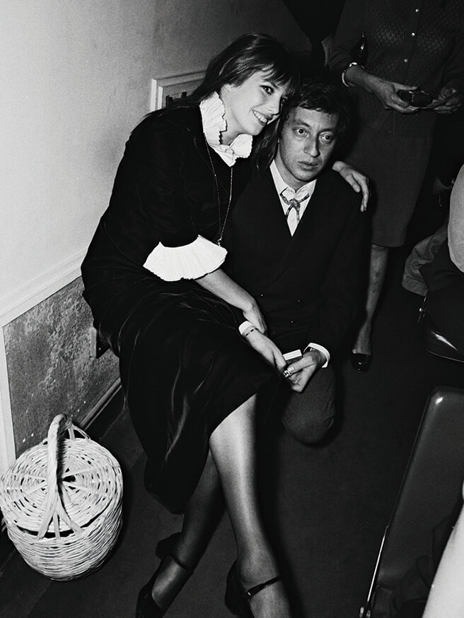 60년대 스타일 아이콘, 에르메스 버킨 백을 만든 주인공, 프렌치 팝의 살아 있는 전설 등 제인 버킨을 수식하는 말은 많다. 그중에서도 그녀의 재능을 음악과 영화의 영역에서 꽃피우게 한 세르주 갱스부르란 남자를 빼놓을 수 없다. 영화 <슬로건>에서 만나 작품이 끝나자마자 결혼한 제인 버킨은 12년의 결혼생활 동안 갱스부르가 감독한 30여 편의 영화에 출연했고, 넉 장의 음반도 발표했다. 프렌치 시크를 대표하는 그녀의 감도 높은 패션 스타일은 갱스부르와 함께 찾은 파티장에서도 빛을 발한다. 러플 장식을 가미한 소녀스럽지만 관능미를 살린 블랙 드레스와 메리 제인 슈즈, 그녀의 시그너처 액세서리인 바스켓 백을 비롯해 화사한 미소 사이로 보이는 살짝 벌어진 앞니까지 모든 것이 매력적이다.