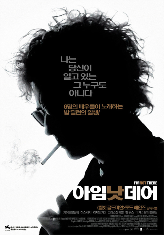 토드 헤인즈 감독의 <아임 낫 데어>는 전설적인 포크락 가수 밥 딜런 특유의 시적인 가사를 줄기로 삼아 밥 딜런의 7가지 서로 다른 자아의 이미지와 이야기들을 진행한다. 크리스찬 베일, 히스 레저, 리처드 기어 그리고 케이트 블란쳇까지 6의 배우가 밥 딜런을 연기하며 개봉 당시 '가장 획기적이며 완벽한 전기 영화'라는 찬사가 이어졌다.