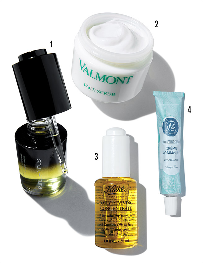 자갈밭 위에 무턱대고 아스팔트를 깔지 않듯 피부 기초공사는 필수다. 민감해진 피부를 생각해 약한 강도로 부드럽게 각질을 제거해 주는 제품을 찾아보자. 미세한 알갱이가 들어 있는 크림 스크럽을 모닝 클렌저에 섞어 세안하거나 닦아내는 패드 타입, 왕면봉 타입 등을 추천. 스킨케어 마지막 단계에서 라이트 오일로 부드럽게 마사지한 뒤 과도한 유분만 티슈로 흡수시키는 것도 좋다. 불필요한 각질만 선택적으로 없애고, 피부에 꼭 필요하지만 들떠 있는 각질을 다시 고르게 정돈할 수 있기 때문.