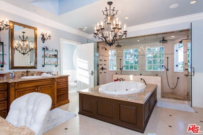 가정집 욕실에 샹들리에가? 그래서일까, 곳곳에 달린 샤워기조차 장식적 역할을 담당하는 듯한 제시카 알바(Jessica Alba)의 욕실