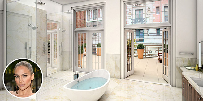 ‘클래스’가 다르다는 걸 보여주는 듯, 입이 떡 벌어질 정도로 높고도 넓은 제니퍼 로페즈(Jennifer Lopez)의 욕실.