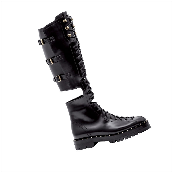 레이스업 디테일의 워크 부츠는 가격 미정, Valentino Garavani.