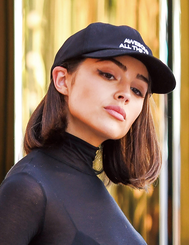 사복 패션 천재로 불리는 미스 유니버스 출신 올리비아 컬포. 특별한 스타일링을 하지 않은 정갈한 단발이 ‘쿨’해 보이는 건 스포티한 볼 캡과 시크한 캐츠 아이 덕분이다.