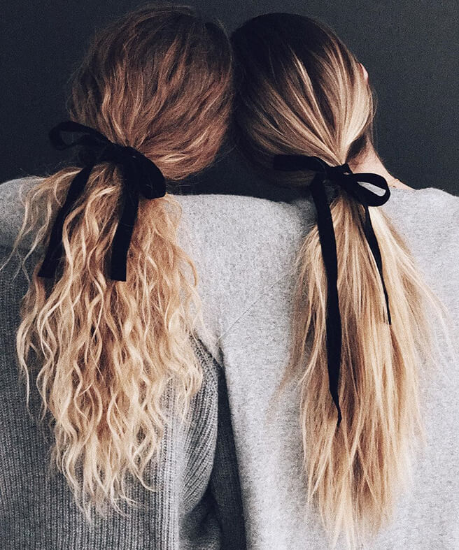 2018년에 헤어 액세서리를 딱 하나만 선택한다면, 단연 블랙 리본이다. 땋은 머리, 번 헤어, 기본 포니테일 등 어떤 스타일을 연출하던 리본으로 묶어 마무리할 것. 벨벳이면 베스트.