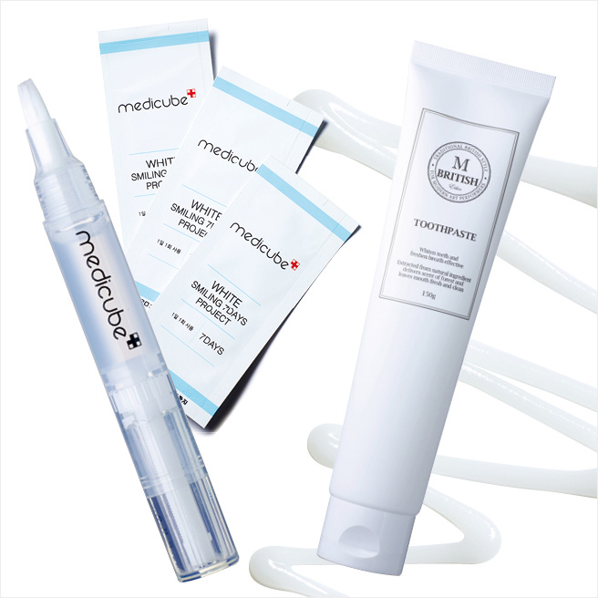 (왼쪽부터) 치아 미백 젤과 패치로 안전한 미백을! 화이트 스마일링, 3만9천원, Medicube.
