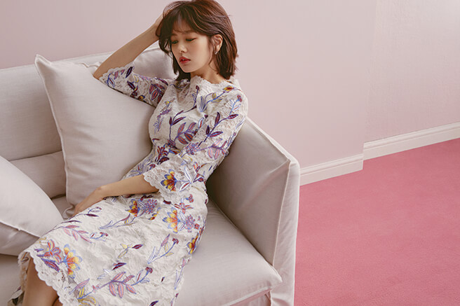 섬세한 레이스 소재의 플로렌스 드레스는 미샤(MICHAA) 1백40만원대