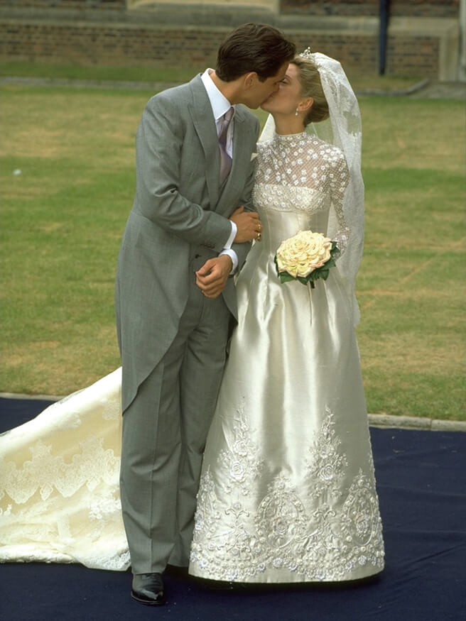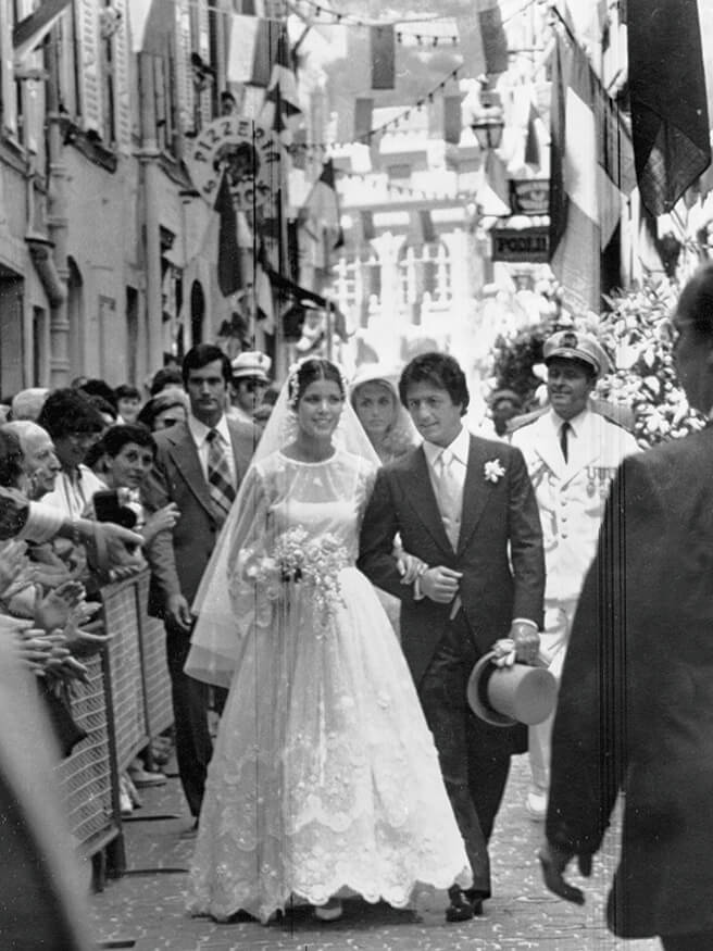 그레이스 켈리의 첫째 딸인 캐롤라인은 21세의 나이에 바람둥이로 이름이 난 38세의 필립 주노와 처음이자 마지막으로 성대한 웨딩 마치를 올렸다. 당시 모나코의 어린 공주는 디올의 디자이너였던 마크 보한에게 결혼식이 얼마 남지 않은 상황에서 웨딩드레스를 의뢰했다. 그래서 정교함이 떨어진다는 평도 있으나 왕실에서는 보기 힘든 독특한 스타일로 지금껏 많은 영감을 주고 있다. 플라워 헤드기어와 트레인과 롱 베일을 배제한 레이스 트리밍의 드레스는 오히려 로맨틱하고 청순해 보이기까지 한다. 이번 시즌 그녀의 보헤미언풍 웨딩드레스는 블루마린 브라이덜 컬렉션에서 한층 더 섬세하고 로맨틱한 디자인으로 재탄생해 신부들의 마음을 사로잡았다.