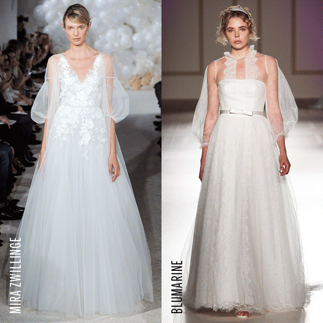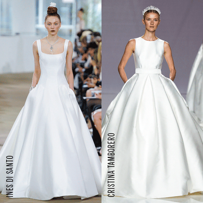 엘리자베스 여왕의 여동생 마거릿 공주의 웨딩드레스는 영국 왕실 역사상 가장 심플하면서도 세련됐다는 찬사를 받았다. 왕실이 애정한 디자이너 노먼 하트넬의 작품으로 완벽한 피팅과 3m가 넘는 실크에 볼륨 넘치는 A라인의 드레스는 클래식하면서 기품 있는 스타일의 대명사가 됐다. 최근 미란다 커, 송혜교 등이 입었던 디올의 드레스가 바로 A라인의 대표적인 예. 이 미니멀한 실크 드레스는 허리를 최대한 가늘어 보이게 하고 작은 키를 커보이게 하는 효과를 주기도 해 그동안 꾸준히 사랑받아 왔다. 특히 이번 2018 S/S 시즌 브라이덜 런웨이에서는 한층 더 풍성하고 우아한 드레스들이 대거 등장해 눈길을 사로잡았다. 림 아크라의 나비 자수 디테일에 동그란 벨을 엎어놓은 듯한 드레스와 스페인 디자이너 크리스티나 탬보레로나 프로노비아스의 허리 밴드로 포인트를 준 웨딩드레스는 공주의 자태를 재현한 듯 우아함의 극치를 보여준다. 장식을 배제한 디자인을 선택한다면 미니멀리즘을 추구하는 신부들도 충분히 시도할 수 있을 것.