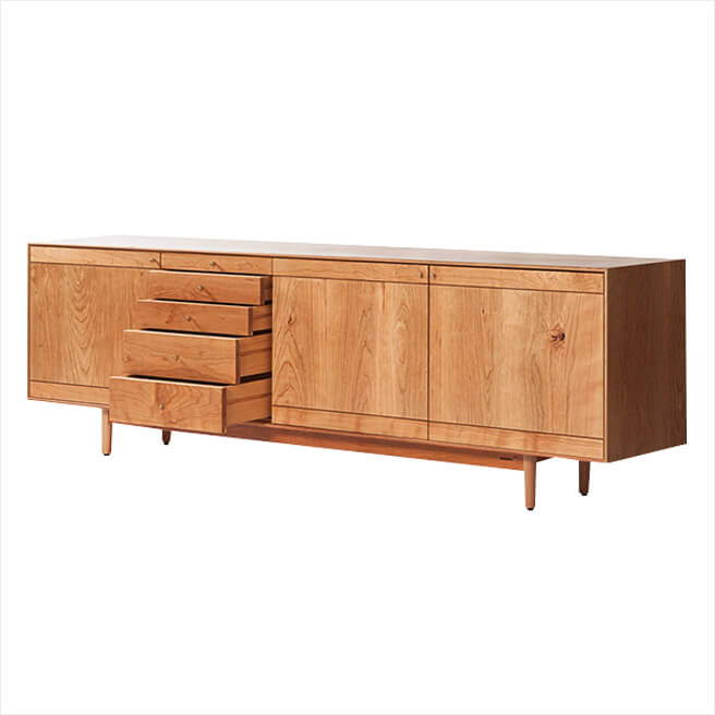 원목 선반은 국내 원목 가구 브랜드 스탠다드에이의 제품. 스탠다드에이의 장점은 상담을 통해 오더 메이드가 가능하다는 것. 물론 온라인 사이트에 있는 기성 모델을 살 수도 있다. 수납장의 가격은 사이즈와 구성, 원목 종류에 따라 다르다.