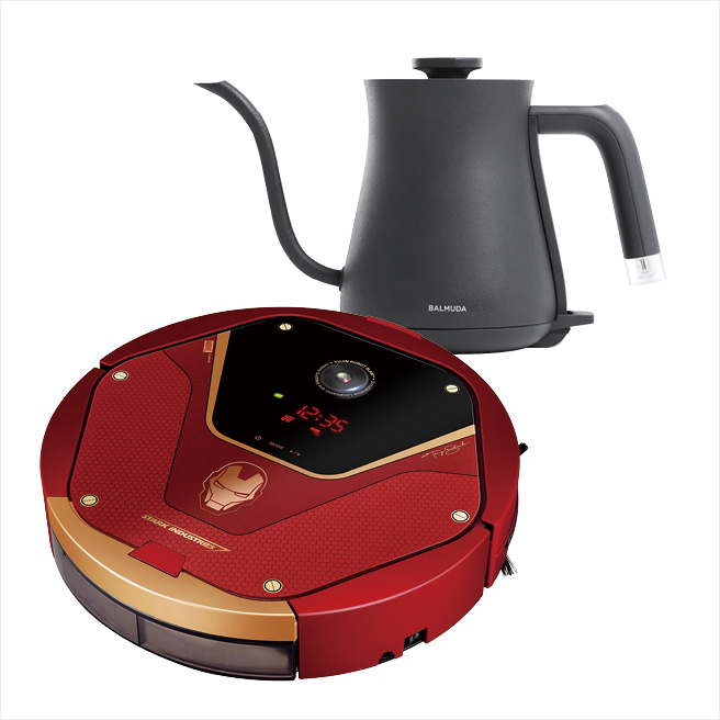 (왼쪽부터) <아이언맨>의 수트와 골드 마스크를 살린 디자인이 돋보이는 로봇 청소기. 54만9천원, Yujin Robot.