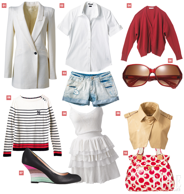 일년 중 옷입는 즐거움을 가장 크게 만끽할 수 있는 시기, 5월이다. 아이템의 피스 수가 부족해 멋 부리기 아쉬운 한여름이나 추위 앞에 무릎을 꿇고마는 한겨울과 달리 재킷이나 셔츠, 베스트 처럼 가벼운 피스들로 최적의 멋을 낼수 있어 스타일링의 황금기라 할수 있지만, 이 황홀한 계절은 게 눈 감추듯 금새 뜨거운 여름 속으로 사라져버리니 쇼핑에 앞서 엉거주품할 겨를이 없다. <엘르>가 제안하는 프리 서머를 슬기롭게 보내기 위한 키 아이템은 격식을 갖추면서도 무거워보이지 않는 화이트 테일러드 재킷부터 베스트, 화이트 셔츠, 롤업 쇼츠 등 총 7가지. 누구나 한벌쯤 가지고 있을 가장 베이식한 아이템을 가지고 상반된 두가지의 트렌디한 스타일링을 가능케하는 듀얼 코디네이션의 키 피스들을 꼼꼼히 리스트업했으니 친절한 가이드에 따라 계획을 세워보면 후회없는 쇼핑을 마칠 수 있을 것이다.