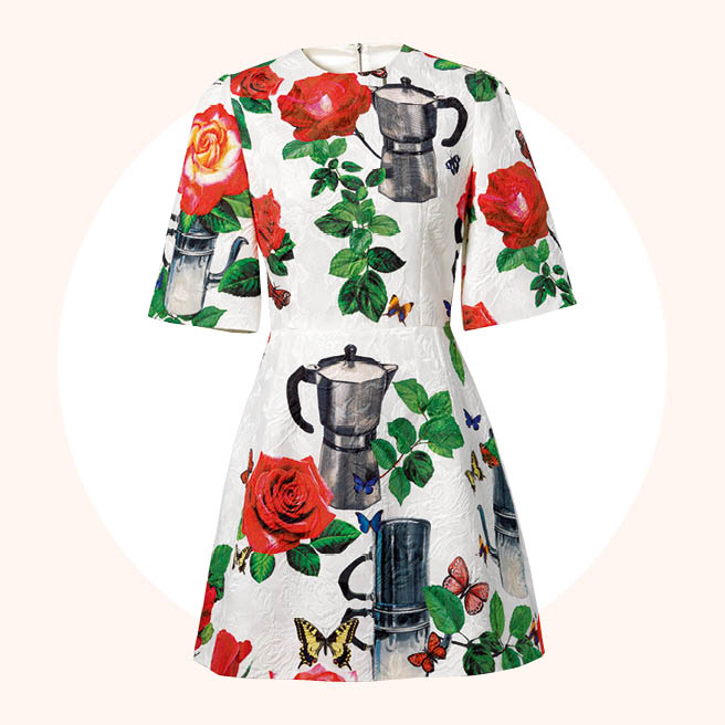 시칠리아 장미를 새겨넣은 미니드레스는 가격 미정, Dolce & Gabbana.