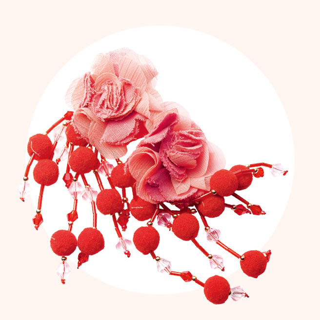 플라워와 폼폰, 크리스털을 장식한 드롭 이어링은 2만5천원, Zara.
