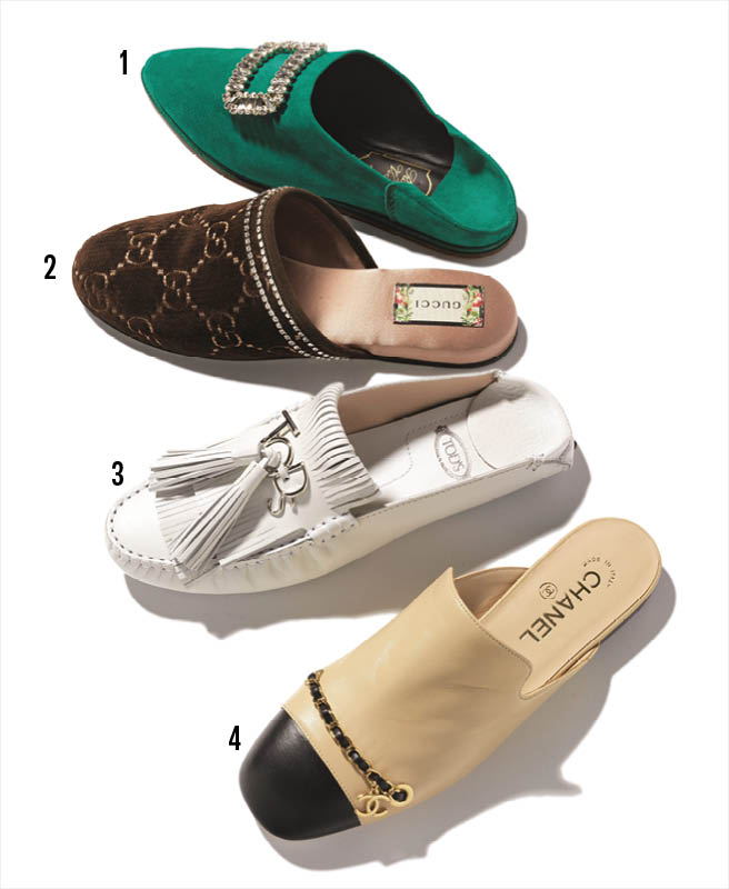 1 선명한 그린 컬러와 주얼 장식이 시선을 사로잡는다. 1백70만원대, Roger Vivier.