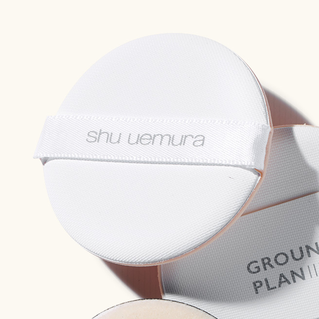 찹쌀떡 같은 쫀쫀한 사용감을 느끼고 싶다면? 메이크업 밀착력을 높이는 루비셀이 무려 4겹으로 구성된 이 퍼프를. 페탈 스킨 쿠션 파운데이션 내장 제품, Shu Uemura.