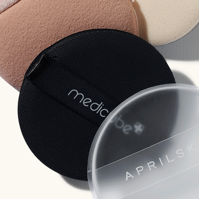 여러 번 사용하는 퍼프가 왠지 찝찝하다고? 세균 번식을 방지하기 위해 항균 처리해 안심. 레드 쿠션 퍼프, 3개입 5천1백원, Medicube.