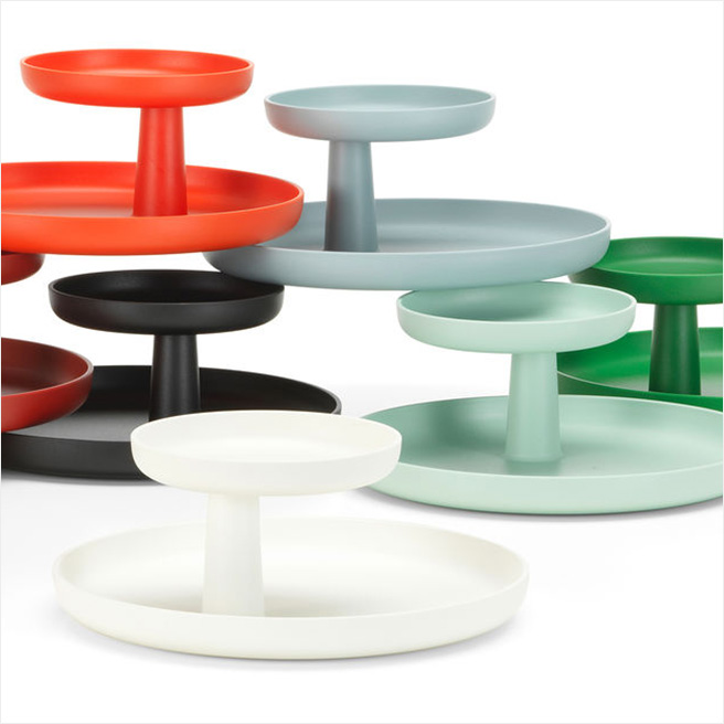 하늘색 트레이는 재스퍼 모리슨이 디자인한 것으로 비트라 제품이다. 위층의 작은 트레이는 회전이 가능해 용이하다. 색상은 흰색, 민트색, 로즈색 등 다양하다. 한지혜가 선택한 색상은 아이스 그레이 색상이며, 국내 여러 편집숍에서 구매할 수 있다. 가격은 7만3000원.