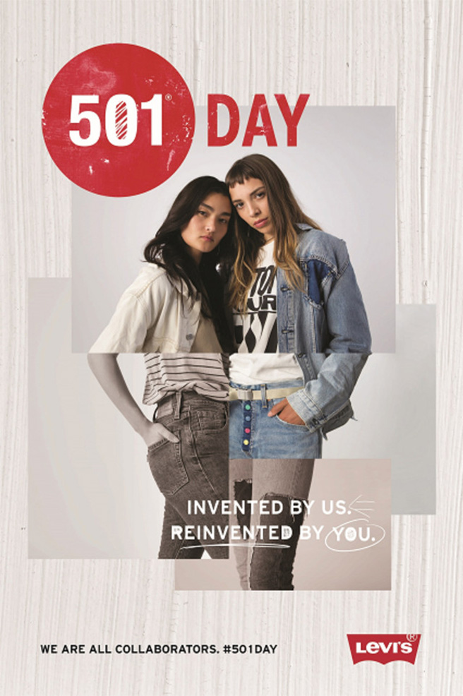 WE ARE ALL COLLABORATORS! 리바이스 501이라는 캔버스 위에 그림을 그리고 패치를 붙이며 나만의 방식으로 청바지를 커스터마이징하는 사람들. 각자의 스토리를 담아 유니크한 501을 만들어내는 과정에서 우리는 자연스럽게 리바이스의 콜라보레이터로 자리매김하게 된다. 해외에서 진행되는 이 프로젝트는 청바지를 구입하는 그들이 단순한 소비자를 넘어 콜라보레이터라는 사실을 501데이를 맞아 다시 한번 일깨워 주고 있다.
