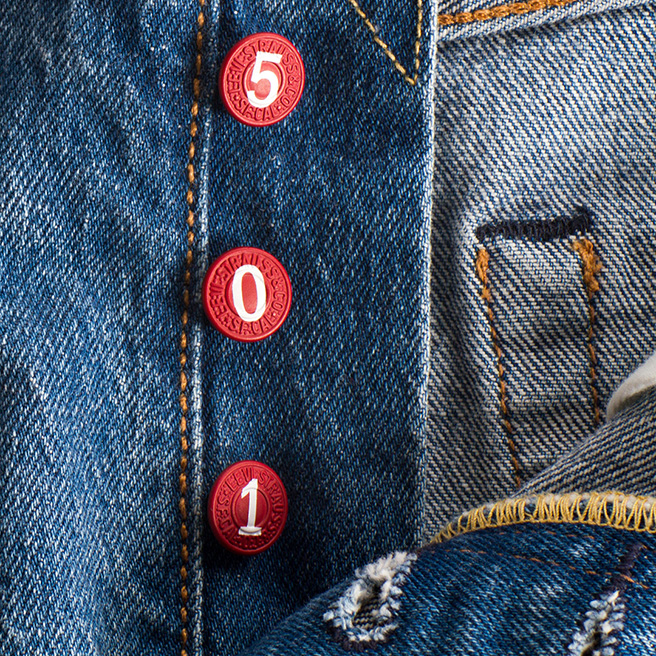 501이 새겨진 빨간 단추 디테일의 남성용 리미티드 에디션. 위트 넘치는 작은 단추 포인트가 단숨에 캐주얼한 데님을 특별하게 만들어준다.