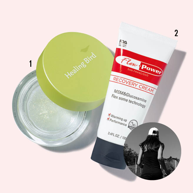 일명 ‘박찬호 크림’으로 유명한 리커버리 크림을 테니스 치기 전에 꼭 바른다. 파라벤, 멘톨 성분을 함유하지 않은 스포츠 전문 크림으로 특유의 열감이 몸을 빠르게 워밍업하는 데 도움이 되기 때문. 그 다음 힐링버드 퍼퓸 젤을 쇄골이나 발목 등에 살짝 바르면 테니스장의 흙 냄새 대신 은은한 향기를 계속 느낄 수 있어 테니스 칠 때의 쾌감이 한결 커지는 느낌.