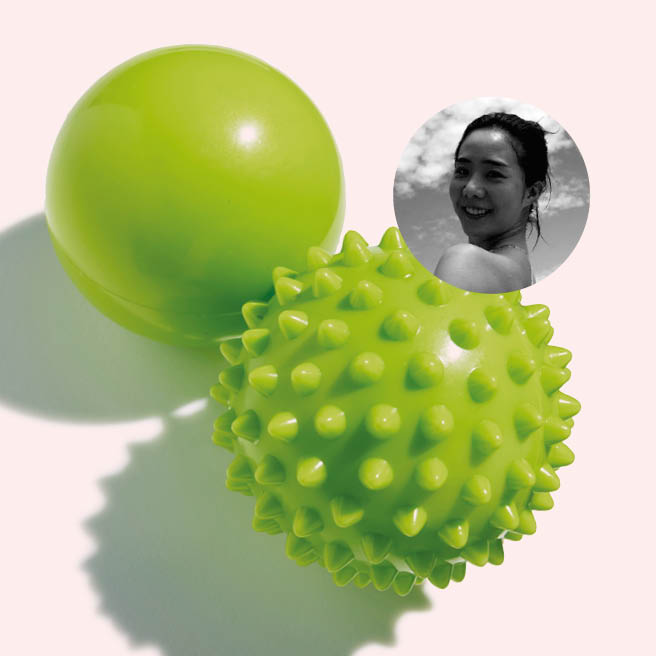 전생에 돌고래였나 싶을 만큼 물속에서 하는 모든 운동을 좋아한다. 문제는 평소 잘못된 자세 때문인지 발바닥에 쥐가 잘 난다는 거다. 그래서 돌기가 있는 마사지 볼을 늘 갖고 다닌다. 물에 들어가기 전후 언제든 힘을 가해 밟아주면 발바닥에 찌릿찌릿 자극이 가해지면서 뭉친 부분이 풀어진다. 자주 가는 장소나 이동하는 동선 어디에서든 마사지 볼이 눈에 띄도록 여러 개 구비해 두고 사용한다는 사실.