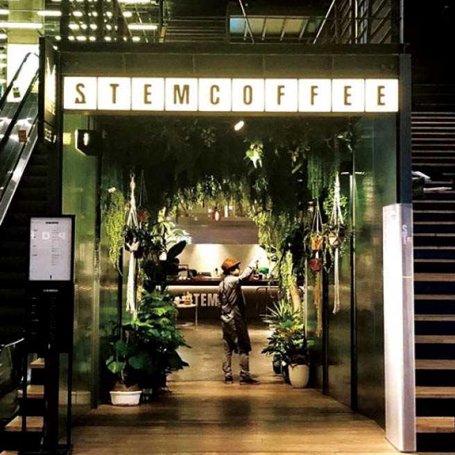 식물원과 서점, 편집 숍과 카페가 한자리에 모였다. 스템커피는 식물의 줄기처럼 생활에 좋은 양분을 주는 ‘생활의 줄기’를 지향한다. 공기정화 식물을 주로 사용하는 플랜테리어 전문 업체 에어가든틸의 대표가 두 팔 걷고 꾸민 공간은 푸른 기운으로 가득하다. 춘자베이커리의 빵과 믹스넛 허니스무디도 매력적이지만 그래도 커피는 반드시 맛볼 것. 바리스타들의 사랑을 듬뿍 받는 마밤에스프레소 머신으로 커피를 내리니까. 이 놀라운 공간은 위치마저 의외의 장소에 자리했다. 바로 코엑스 메가박스 옆. @stem_coffee