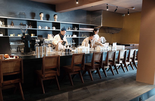 4개의 층으로 구성했다. 1층에는 파운드 로컬이 있다. 오전 10시부터 오후 6시까지는 카페, 저녁 7시부터 12시까지는 비스트로로 운여된다. 카페 메뉴로는 모로칸 민트티, 호지 블랜딩티, 루이보스티가 있다. 파운드 로컬에서 개발한 생소한 메뉴를 맛보는 재미도 쏠쏠하다. 티 한 잔 마실 때도 공예의 매력을 느낄 수 있게 작가가 만든 컵에 담아 준다. 아마 차 한 잔 마시면, 컵이 사고 싶어질 거다. 저녁에 운영되는 비스트로는 국내 각 지역의 식자재를 활용한 한식 메뉴가 대부분이다. 맥주, 와인, 사케도 같이 판매하니, 저녁 가볍게 한 잔 하고 싶을 때 찾을 법 하다.