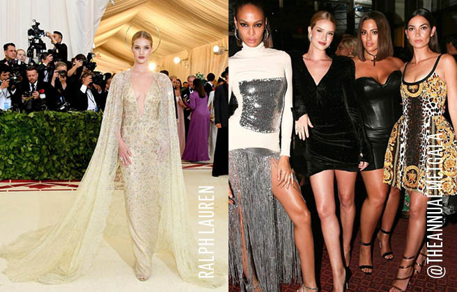 동그란 헤드 피스와 랄프 로렌 드레스로 성스러운 분위기를 어필하던 모델 로지 헌팅턴 휘틀리는 섹시한 블랙 드레스로 반전 매력을 어필했다. 모델 포스란 이런 것.