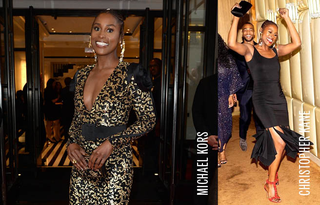 잠시만요~ 흥녀 지나가실게요! 탄탄한 구릿빛 피부로 건강미를 뽐낸 배우 잇사 레이. 시원한 미소 사이로 흐르는 금색의 헤어 장식과 드레스가 유쾌한 패션 모먼트를 완성한다.