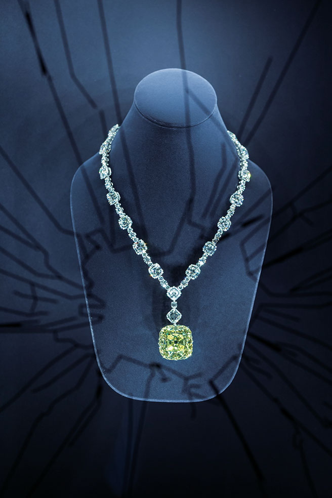 3단 트레이의 핑거 푸드와 영롱한 티파니 주얼리가 가득한 진열대를 보니 정신이 아득해졌다. 이내 흥분한 마음을 가라앉히고 매장 곳곳을 탐험하기 시작했다. 이것저것 끼워본 지 얼마나 지났을까. 티파니 앤 코 하이주얼리 부문 부사장이자 수석 보석학자인 멜빈 커틀리(Melvyn Kirtley)가 비밀스러운 공간으로 안내했다. 그곳에서 최초의 티파니 블루 박스와 128.54캐럿의 옐로 다이아몬드로 만든 리본 로제트 네크리스(영화에서 오드리 헵번이 착용했다)를 보니 탄성이 절로 나왔다. 박물관 유물에서나 느껴지는 기품과 경이. 그 눈부심에 매료된 것도 잠시. 부사장이 다시 입을 열었다. “이제 티파니 최초의 향수를 공개합니다. 촬영은 불가하니 스마트폰은 잠시 넣어두세요.” 불이 꺼지고, 광고 캠페인이 흘러나왔다. ‘All you need is love.’ 귀에 익은 비틀스 음악을 리메이크한 BGM과 이를 읊조리는 네 모델의 무채색 피부, 다이아몬드 주얼리, 티파니 블루, 향수가 흘렀다. 이어 실물로 마주한 티파니 오 드 퍼퓸. 방금 본 옐로 다이아몬드를 꼭 닮은 커팅 보틀에 담겨 있었다. 이 투명한 보틀을 해치지 않으려는 듯 향수병 바닥에는 조그맣게 티파니 앤 코 마크가 새겨져 있었다. 장난감 반지에 이름을 새겨달라는 영화 속 오드리 헵번의 짓궂은 요청에 점원이 기꺼이 응해준 것처럼! 조심스럽게 뚜껑을 열어 향수를 ‘칙’ 뿌리자 감동이 배가됐다. 한마디로 표현하면 신선함이 압권. 시각으로 표현하면 반짝임 그 자체랄까? “스파클링 플로럴 머스크 계열이죠. 가장 먼저 풍기는 그린 만다린은 스파클, 파란 하늘을 표현해요. 청량하고 기쁨이 가득하죠. 아이리스는 로맨틱 그 자체고요. 잔향은 파촐리와 머스크를 섞어 관능미를 배가했습니다.” 조향사 대니엘라 앤드리어(Daniela Andrier)의 말처럼 긍정의 기운이 샘솟는 향이었다. 쉽게 친해질 수 있을 법한 ‘호감형’ 인상을 풍기는! 1분, 1초도 놓치고 싶지 않은 꿈 같은 순간. 에디터의 뇌리에 수많은 장면과 향기를 남긴 채 이벤트는 끝이 났다. “향은 감정을 유발하죠. 문화와 종교가 다른 여성에게 그들만의 방식으로 특정한 감정을 선사한달까요. 티파니 보석은 쉽게 살 수 없지만, 향수는 그렇지 않잖아요?