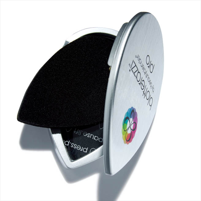 기름종이와 스펀지의 옳은 만남. 실리콘 재질이 번들거리는 유분은 깔끔하게 흡수하고 메이크업은 밀착시킨다. 거울이 장착된 얇은 케이스에 담겨 휴대하며 수정 화장하기에도 굿.