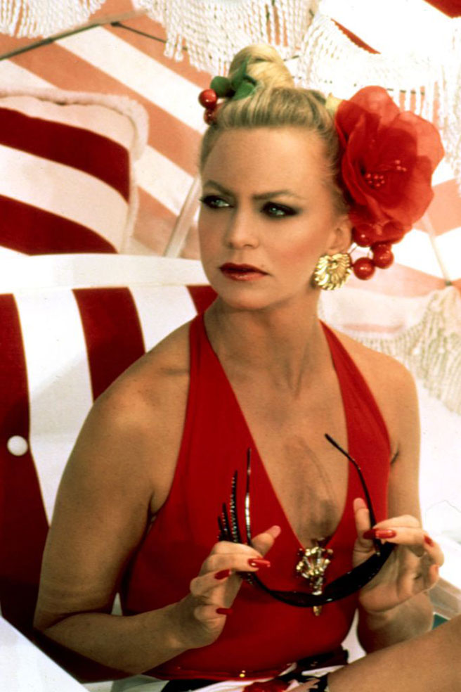 수영복이 패션의 일부임을 각인시킨 영화 <폭시 브라운>의 주인공 팜 그리어의 스타일링. 큼직한 선글라스와 화려한 주얼리의 믹스 매치가 돋보인다.