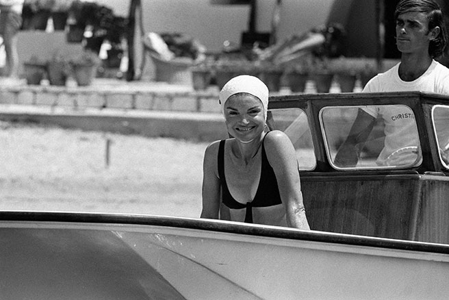 수영복이 대중들에게 얼마나 일반화된 패션이었는지 보여주는 한 장의 사진. 퍼스트레이디인 재클린 케네디가 화이트 스카프를 머리에 두르고 사랑스러운 미소를 던지고 있다.