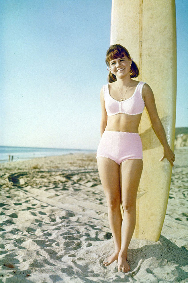 1960년대 중반을 강타한 수영복 유행 코드를 한마디로 표현하자면 말 그대로 사랑스럽다. 영화 <기제트(Gidget)>의 배우 샐리 필드가 착용한 수영복이 트렌드의 중심이 됐다. 헴 라인의 입체적인 터치와 달콤한 핑크 컬러의 디자인이나 프릴 디테일의 경쾌한 옐로 컬러의 스윔 슈트가 그것.