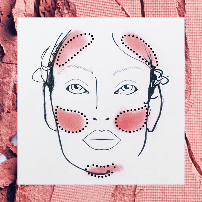 긴 얼굴이나 넓은 이마 등 얼굴형 보완이 필요한 이들이라면 주목! 턱 끝은 양 볼과 마찬가지로 혈색이 도는 곳이기 때문에 블러셔를 터치해도 컬러가 자연스러워 보이면서 얼굴이 짧아 보이는 효과를 준다. 헤어 라인에 바르면 까진 이마를 은근히 커버하면서 평평한 면적에 입체감을 부여하기까지. 단, 어색하지 않도록 스킨 톤과 잘 어우러지는 핑크 베이지 계열의 컬러와 무게감이 느껴지지 않는 밀착력이 우수한 텍스처가 적절하다.