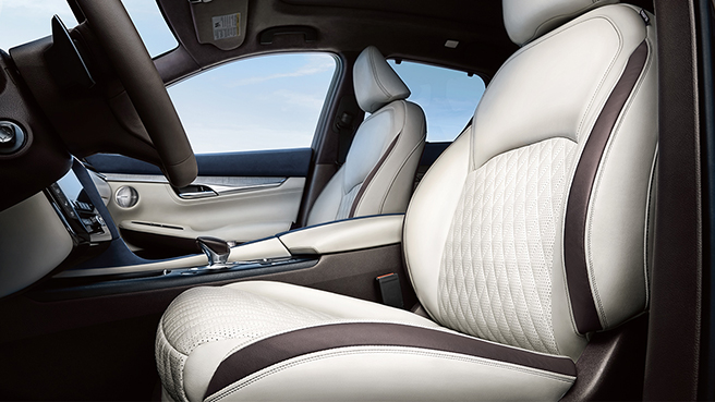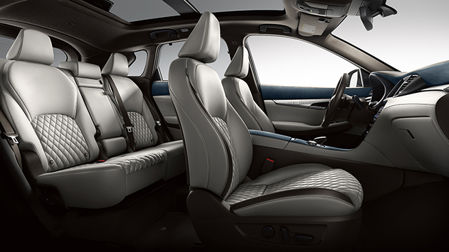 QX50은 프리미엄 브랜드에 걸맞는 인테리어 디자인을 구현했다. 소재의 표면과 질감이 멋지고, 짙은 네이비로 포인트를 준 센터 콘솔과 헤드라이너가 흰색 가죽 트리밍과 대비되어 미감을 높였다. 특히 센터 암 레스트의 촉감이 부드럽고, 전화 동기화가 빠르고, ADAS 기술과 하드 버튼과 터치 스크린이 적절하게 구성되어 사용자의 편리성을 높였다.