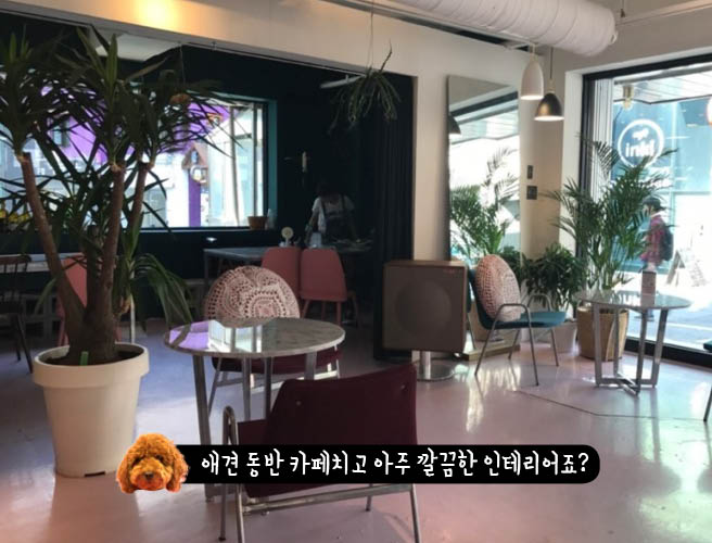오해하지 말 것. 이곳은 애견 카페가 아니다. 꽃집이다. 티 한잔 즐길 공간이 있는데 다행히 밤이랑 가도 반겨주신다. 꽃과 식물 향이 조용한 음악 소리와 함께 어우러진 이 공간은 밤이와 에디터의 시크릿 힐링 스폿. 단 꽃과 식물에 피해를 주지 않게 필히 안고 있어야 하며, 또 이를 먹지 않게 조심해야 한다.