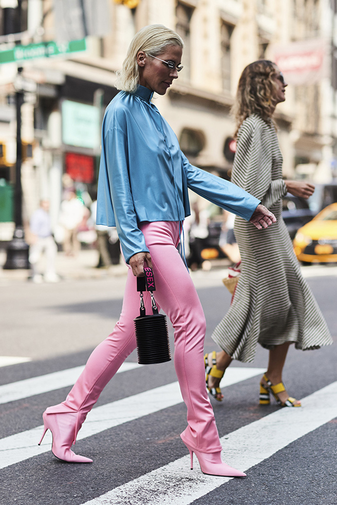 스트리트 고수는 달라도 한참 다르다. 상반된 두 개의 컬러로 스타일링에 재미를 더했다. 이뿐만이 아니다. 팬츠와 같은 컬러의 부티를 매치해 다리가 길어 보이는 효과를 연출했다.