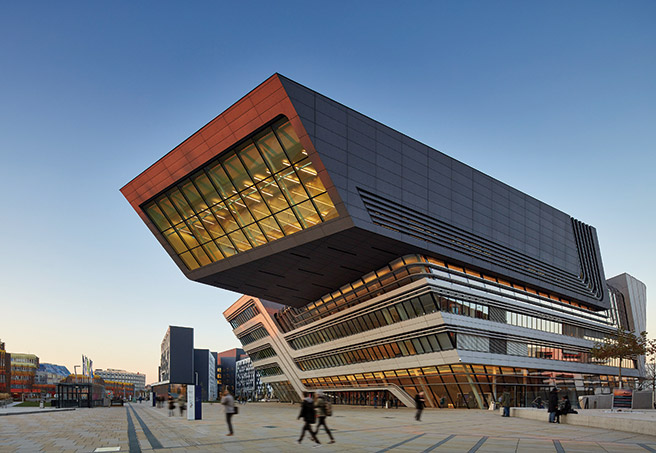 비엔나 경제경영대학 캠퍼스에서 마주친 자하 하디드 설계 건물.