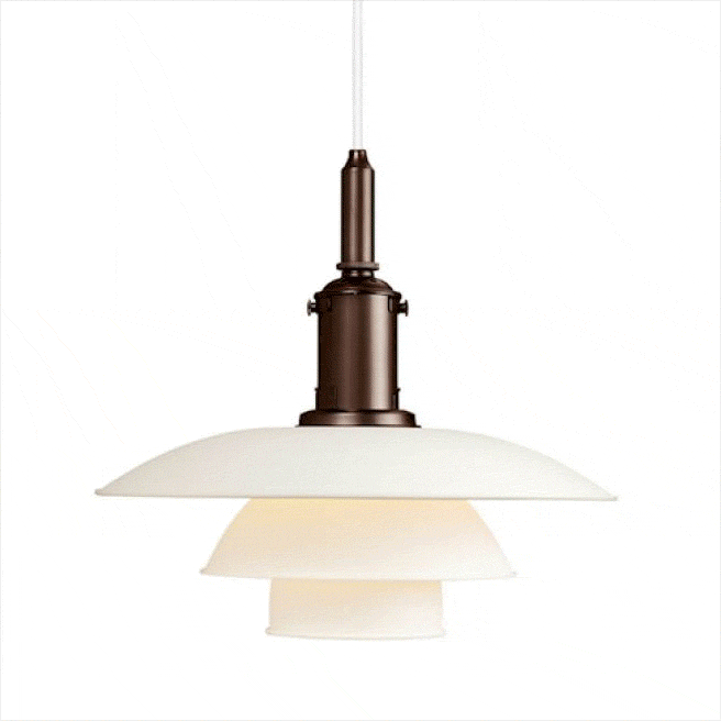 이 조명은 폴 헤닝센이 디자인한 PH 3½-3 팬던트 조명이다. 루이스폴센에서 생산하고 있다. 폴 헤닝센이 디자인한 조명은 덴마크 가정의 1/3이 소장할 정도로 유명하다. 그는 조명이란 빛을 적절하게 확산하여 방 전체의 분위기를 편안하게 만들어야 한다고 생각했다. 그 핵심은 전등갓이다. 폴 헤닝센이 디자인한 조명은 전구 빛이 전등갓에 반사되어 아래쪽을 비추기 때문에 빛이 한결 부드럽다. 하여 다이닝 테이블 위 혹은 침대 머리맡에 두어도 전혀 눈이 부시지 않는다.