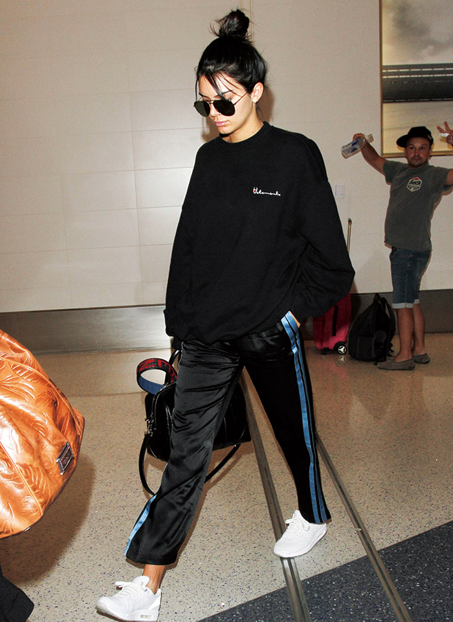 켄덜 제너의 시크한 ‘똥머리’ 기술 따라잡기. 스텝 원, 손으로 성기게 빗어 올린 하이 포니테일을 대강 둘둘 말아 상투의 볼륨을 살릴 것. 스텝 투, 정중앙의 앞머리는 훌훌 털어 이마로 자연스럽게 떨어뜨릴 것.
