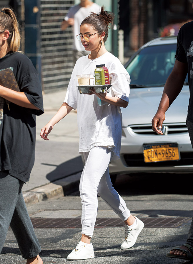이렇게 깜찍한 심부름꾼을 봤나. 올 화이트의 심플한 패션에 뻗치게 묶은 업두로 발랄함을 더한 셀레나 고메즈. 화장기 없는 얼굴에도 포기하지 못한 짙은 브로 메이크업에 왠지 모를 인간미가.