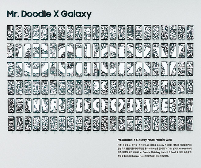 한국에서 열리는 첫 개인전에서 132대의 갤럭시 노트로 구현한 미디어 월을 선보였는데 예술가들이 캔버스에 의존했던 20년 전과 달리 기술 덕분에 많은 가능성이 열렸다. 스마트폰만 있어도 100만 개의 그림을 그릴 수 있을 정도다. 내 경우, 스마트폰에 한 낙서들이 실제 작품으로 완성되기도 한다. 새로운 도구를 통해 이전의 방식을 깨고 시야를 넓힐 수 있다는 점이 긍정적이다.