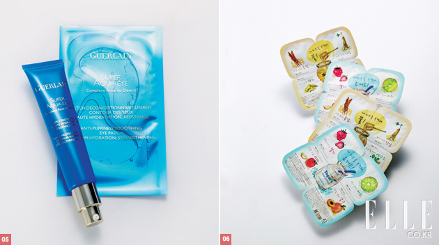 5 guerlain super aqua-day emulsion SPF 30 & eye patch 질감★★ 사용감★★ 마무리감★★★ ‘에멀션’은 맨처음 리치하다는 생각이 들었지만 막상 피부에 바르니 발림과 흡수력이 좋은 편이었다. 은은한 향기와 높은 선블록 효과도 마음에 들었던 부분. 함께 쓴 ‘아이 패치’는 하이드로겔 타입의 텍스처와 강한 흡수력이 장점이었다. 촉촉하고 상쾌한 사용감이 피로를 즉각적으로 없애준 제품. 다만 패치를 붙인 채 활동하면 흘러내릴 수 있으니 주의! 에멀전. 40ml. 12만9천원. 패치. 2장×6. 15만원. SU YOUNG